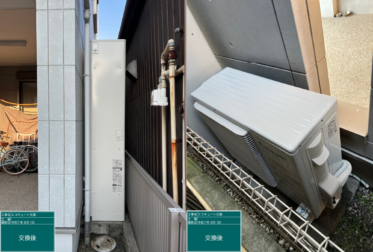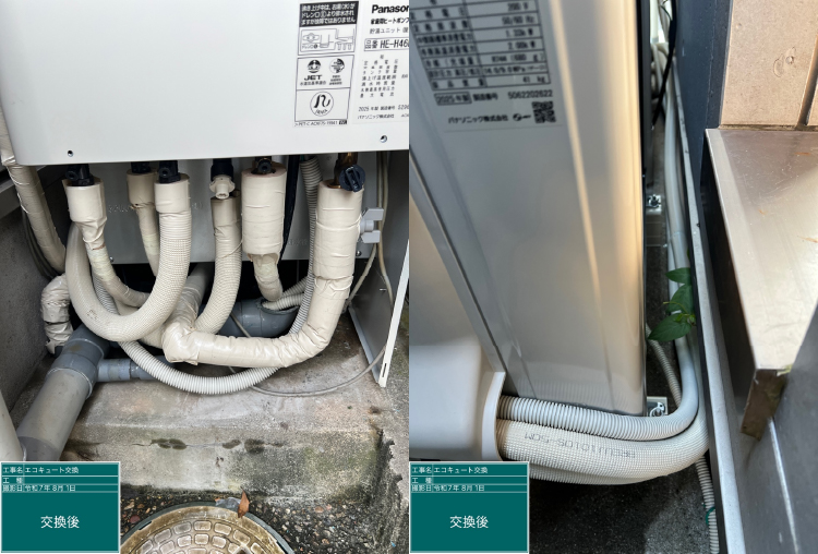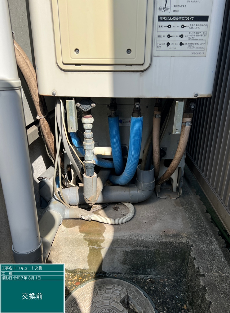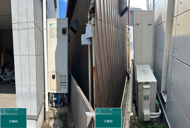 愛知県名古屋市熱田区でパナソニック「HE-H46LQS」を設置~フェンスを外して狭い通路に設置されたEQを交換~<エコキュート交換工事例>