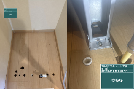 新潟県新潟市中央区で三菱「SRT-S376」を設置~玄関内の狭小スペースに設置されたタンクを交換<エコキュート交換工事例>