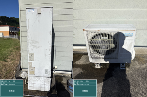 エコキュート交換工事の様子や、それにまつわるトラブル事例を紹介するこのコーナー。今回紹介するのは、佐賀県伊万里市にお住まいのE様邸で行った交換工事の様子。経年劣化が原因でタンクから水漏れしてしまったセミオートタイプのエコキュートを交換しました。