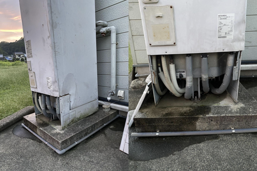 確認すると、タンクが水漏れを起こしていました。使用を始めてから15年が経過しているため、エコキュートの寿命も考慮してすぐに新しいものに交換します。経年10年以上のエコキュートは内部や配管が劣化して水漏れのリスクが高まります。そのまま放置するのは危険なので、水漏れに気付いた際はすぐにご相談ください。また、水漏れ時によくある故障症状や対処法などについてまとめた記事もあるので、ぜひ参考にしてください。