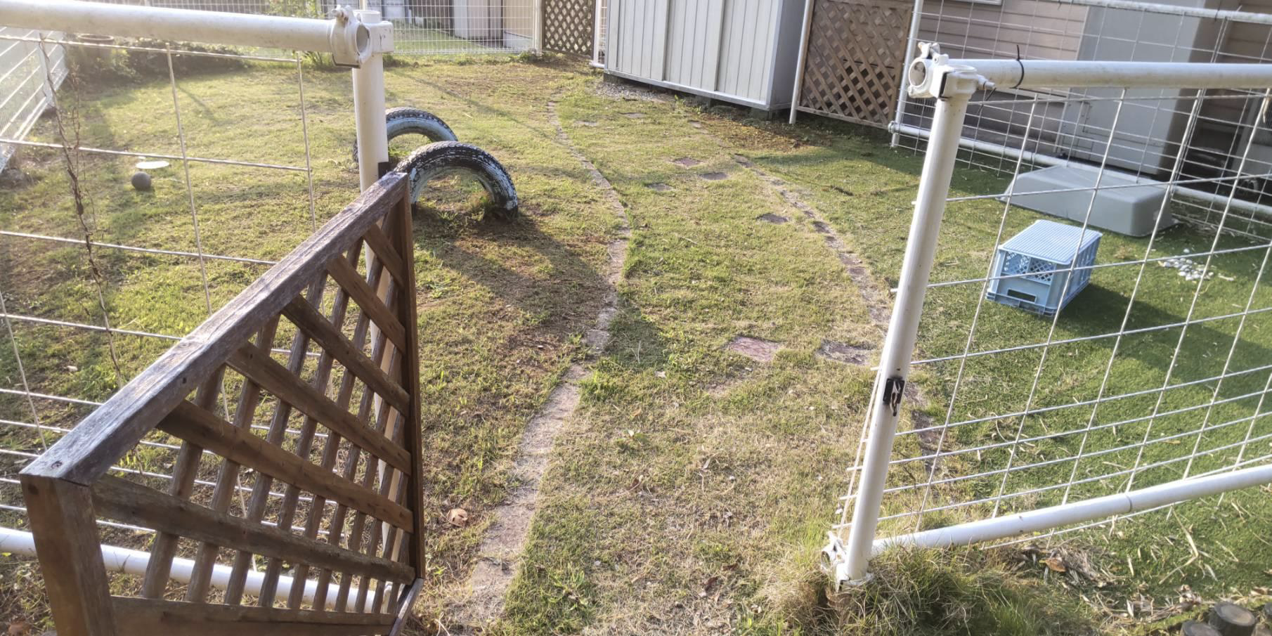 そのため、庭に設けられた門から庭の中を通ってタンクの搬出入を行います。庭の出入口は狭いので、そこでは扉の上までタンクを持ち上げて運びます。
