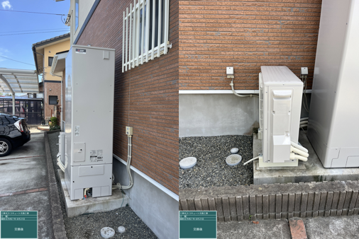 今回交換工事に訪れたのは、宮城県遠田郡美里町(とうだぐん みさとまち)。県北部の大崎平野に位置し、農業や造園業が盛んでバラの特産地としても知られるエリアです。太平洋側の気候で冬の降水量も比較的少ないのが特徴です。交換工事のご依頼を頂いたH様のご自宅は、河川敷沿いの住宅地に建つ一軒家。エコキュートは家屋の正面に設置されていました。