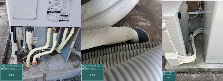 セミオートタイプからフルオートタイプのエコキュートに交換するにあたり、ふろ配管の増設工事を行う必要があります。追い焚きする際にタンクから浴槽にお湯を戻すための配管を追加するためです。当社ではセミオートのエコキュートをフルオートに交換する工事を多数行っています。交換事例の一部を紹介した記事もあるのでぜひ参考にして下さい。