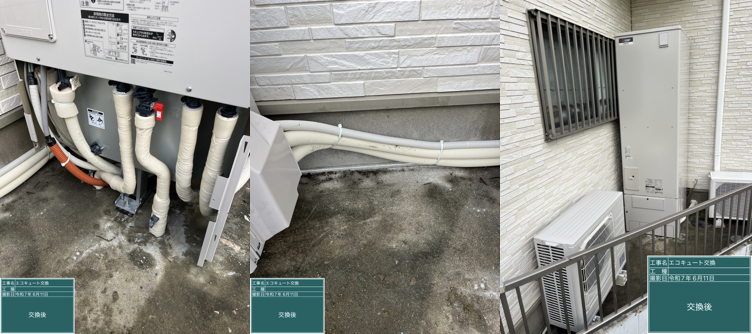 エコキュート交換工事の様子や、それにまつわるトラブル事例を紹介するこのコーナー。今回紹介するのは、大阪府大阪市都島区にお住まいのS様邸で行った交換工事の様子。搬入経路を確保するため、フェンスを外して敷地の外からタンクの搬出入を行った例です。