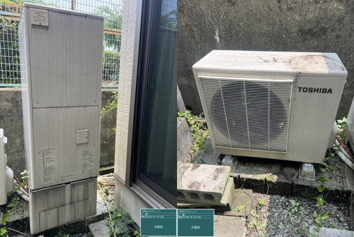 既設のエコキュートは、東芝の「HWH-FB371C」。2011年に製造された角型・フルオートタイプのエコキュートです。「E5」や「EHL」のエラーコードが表示されてお湯が出なくなってしまったというご連絡があり、翌日すぐに駆けつけ交換工事を行いました。使用し始めてから13年が経過していることもあり、今回の故障が交換のタイミングとして最適です。家族が増えたこともあり、これまでよりもたくさんお湯を使えるようにしたいというご相談もあったため、貯湯タンクの容量を370リットルから460リットルに変更しています。