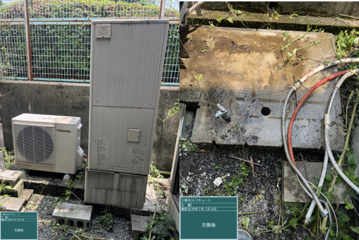 エコキュート交換工事の様子や、それにまつわるトラブル事例を紹介するこのコーナー。今回紹介するのは、京都府京都市西京区にお住まいのH様邸で行った交換工事の様子。搬入経路を確保するため、宅内を通ってタンクの搬出入を行った例です。タンクの貯湯サイズを370リットルから460リットルのものに変更しました。