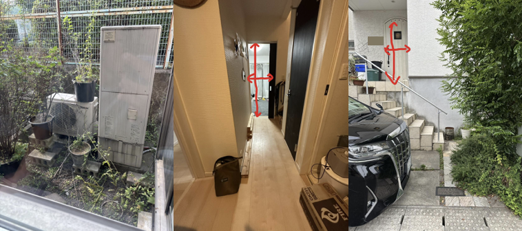 エコキュートは、家屋の裏側に設置されています。家屋周りには通路がないため、今回は宅内を通って、設置場所に通じる部屋の窓からタンクを搬出入します。搬入経路となる家の中はすべて採寸を行って、養生を施してから作業を進めます。
