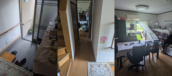 そこで今回は、玄関から宅内を通って部屋の窓からタンクの搬出入を行うことになりました。ダイニングルームの窓が設置場所の通路に通じています。