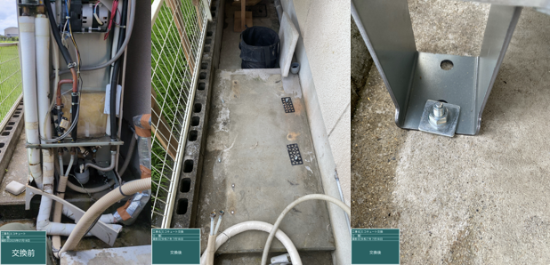 既設のタンクは水抜きなど下処理を行ってから解体して運び出していきます。運び出せたら基礎や配管に問題がないかどうか確認し、新しいタンクの脚位置に合わせてアンカーボルトを打ち込みます。