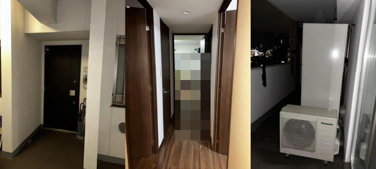 エコキュートが設置されているのはベランダです。そのため、玄関から宅内を通って機器を搬出入します。