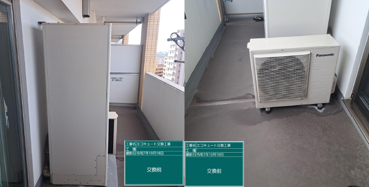 エコキュート交換工事の様子や、それにまつわるトラブル事例を紹介するこのコーナー。今回紹介するのは、宮城県仙台市太白区にある「プレシスあすと長町」にお住まいのS様邸で行った交換工事の様子。マンションのベランダに設置されたエコキュートを交換するため、宅内を通ってタンクの搬出入を行った例です。