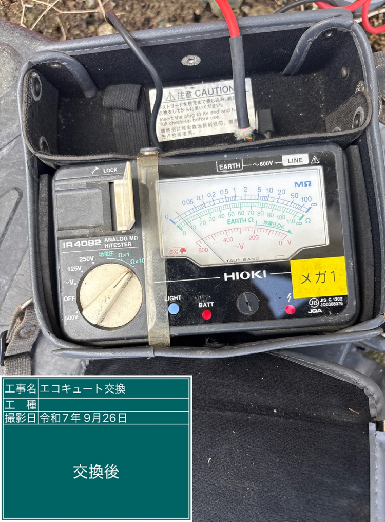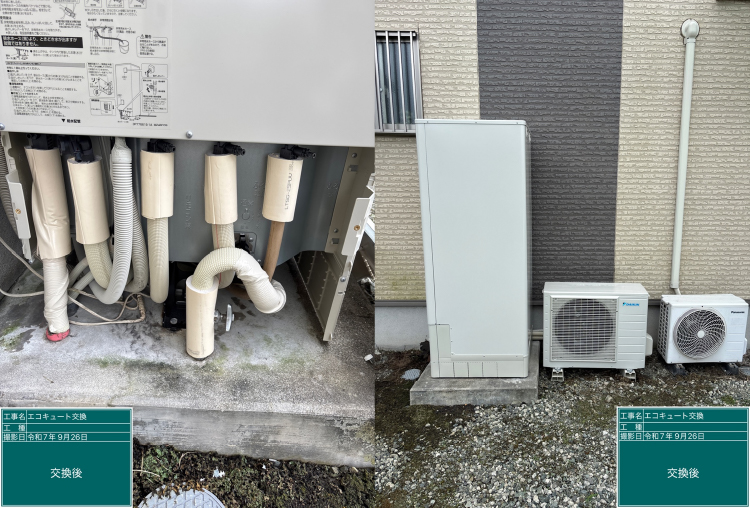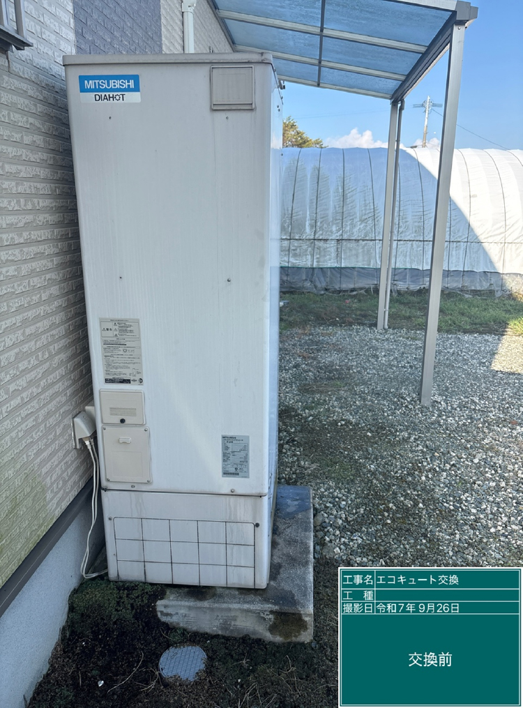 エコキュート交換工事の様子や、それにまつわるトラブル事例を紹介するこのコーナー。今回紹介するのは、熊本県阿蘇郡高森町にお住まいのH様邸で行った交換工事の様子。セミオートタイプの電気温水器を同じセミオートタイプのエコキュートに交換した例です。