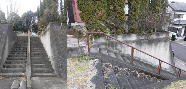 ご自宅の入口までは長い階段を使う必要があります。約20段ある階段を昇り降りして大きなタンクを運ぶため、細心の注意を払って作業を行います。