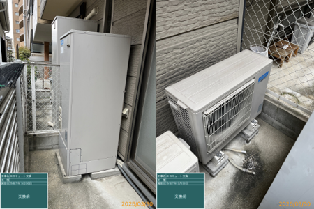 エコキュート交換工事の様子や、それにまつわるトラブル事例を紹介するこのコーナー。今回紹介するのは、大阪府大阪市鶴見区にお住まいのA様邸で行った交換工事の様子。フェンスで塞がれた場所に設置されたエコキュートを交換するため、宅内を通って部屋の窓から機器の搬出入を行いました。