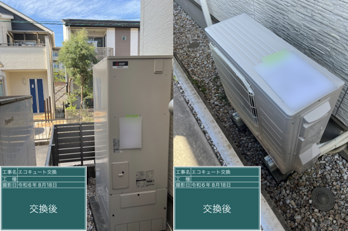 愛知県津島市で三菱「SRT-S376」を設置~隣家の敷地からタンクを搬出入~<エコキュート交換工事例>