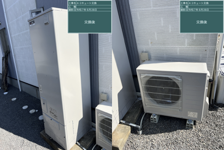 電気温水器では使用しないヒートポンプの新設、ふろ配管の増設を行ってフルオートのエコキュートに交換しました。